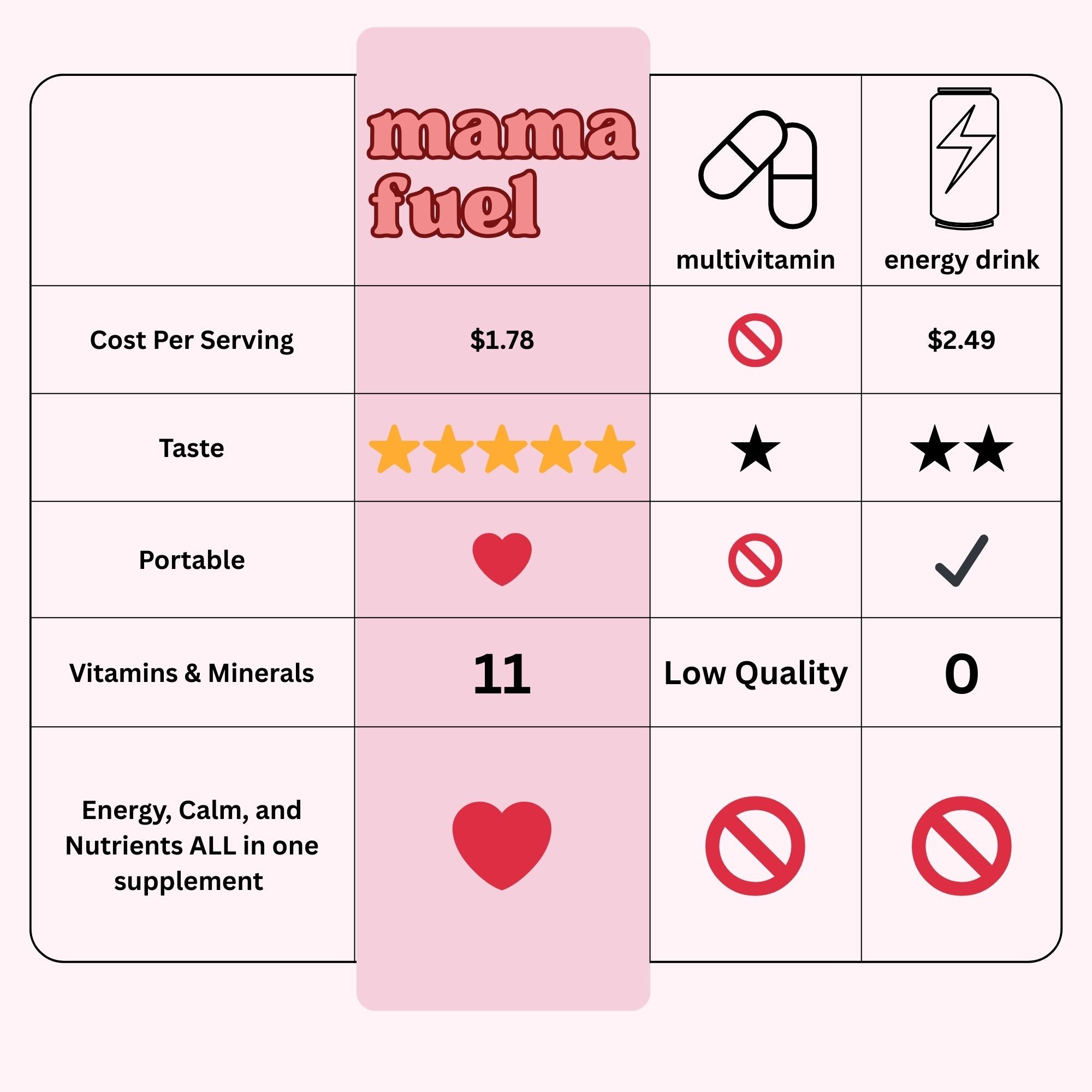 Every mom we've heard from who's tried Mama Fuel has been genuinely impressed by the taste. It's a drink you'll actually look forward to each morning, not another wellness product gathering dust in your pantry.